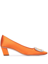 45mm Belle Vivier pumps Highlights - Orange - Branded leather insole - Low block heel - Crystal buckle detail - Square toe Made in Italy Composition Silk 100%