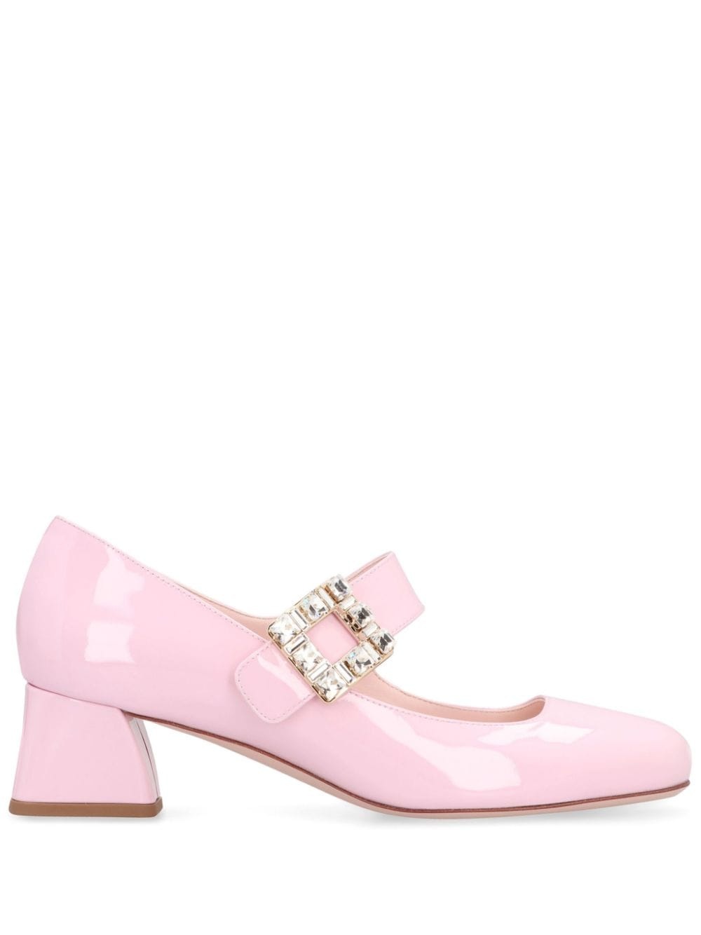 45mm Tres Vivier pumps Highlights - Light pink - Calf leather - Patent finish - Press-stud fastening - 45mm block heel - Crystal buckle detail - Square toe - Branded leather insole - Leather sole Made in Italy Composition Leather 100% SIZE & FIT Measurement HEEL 1.96 in(5 cm) Sole height 0.39 in(1 cm)