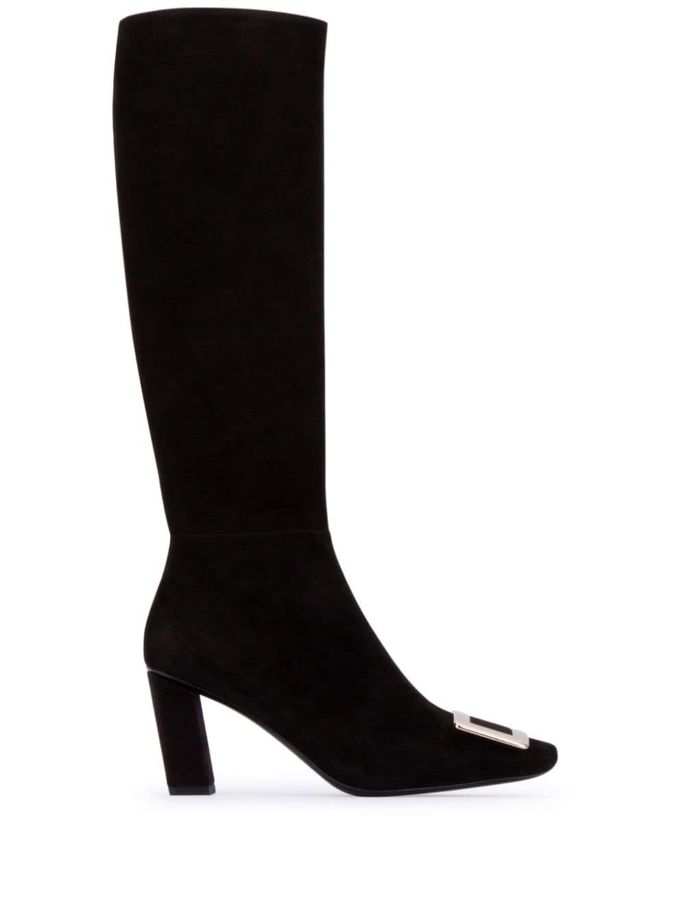 75mm Belle Vivier boots Highlights - Black - Suede - Decorative buckle detail - Square toe - Front zip fastening - Knee-length - Leather lining - Mid block heel - Leather sole Made in Italy Composition Suede 100%