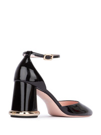 85mm Viv' Podium pumps Highlights - Black - Calf leather - Buckle-fastening ankle strap - Patent finish - High block heel - Ring hardware detailing - Round toe - Branded footbed - Leather sole Made in Italy Composition Lining: Calf Leather 100% Sole: Calf Leather 100% Outer: Patent Calf Leather 100% SIZE & FIT Measurement HEEL 3.34 in(8.5 cm)