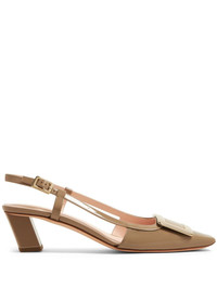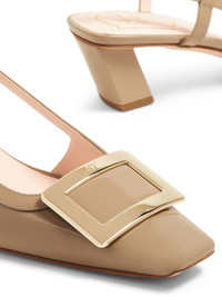 Belle Vivier 45mm slingback leather pumps Highlights - Sand beige - Leather - Patent finish - Logo-buckle detail - Square toe - Buckle-fastening slingback strap - Branded leather insole - 45mm block heel - Leather sole Made in Italy Composition Leather 100% SIZE & FIT Measurement HEEL 1.77 in(4.5 cm)