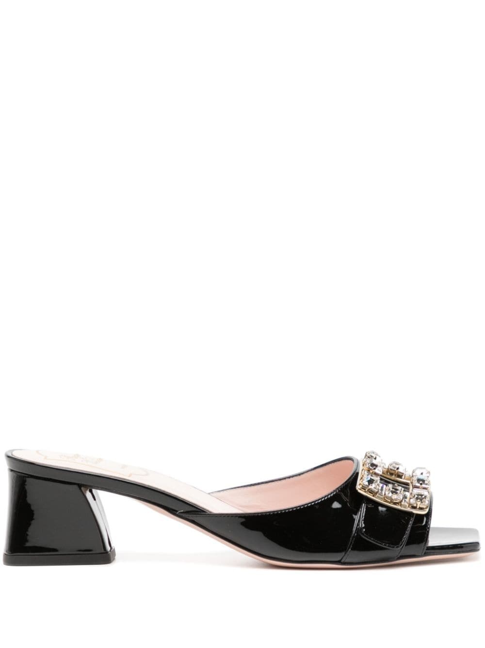 45mm Bikiviv sandals Highlights - Black - Leather - Patent finish - Crystal embellishment - Square open toe - Branded leather insole - Mid block heel Made in Italy Composition Lining: Leather 100% Sole: Leather 100% Outer: Patent Leather 100% SIZE & FIT Measurement HEEL 1.77 in(4.5 cm)
