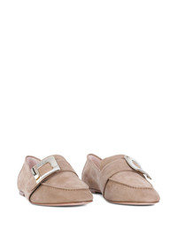 buckle-detail suede loafers Highlights - Brown - Suede - Square buckle - Almond toe - Flat sole Made in Italy Composition Lining: Calf Leather 100% Sole: Leather 100% Outer: Suede 100%