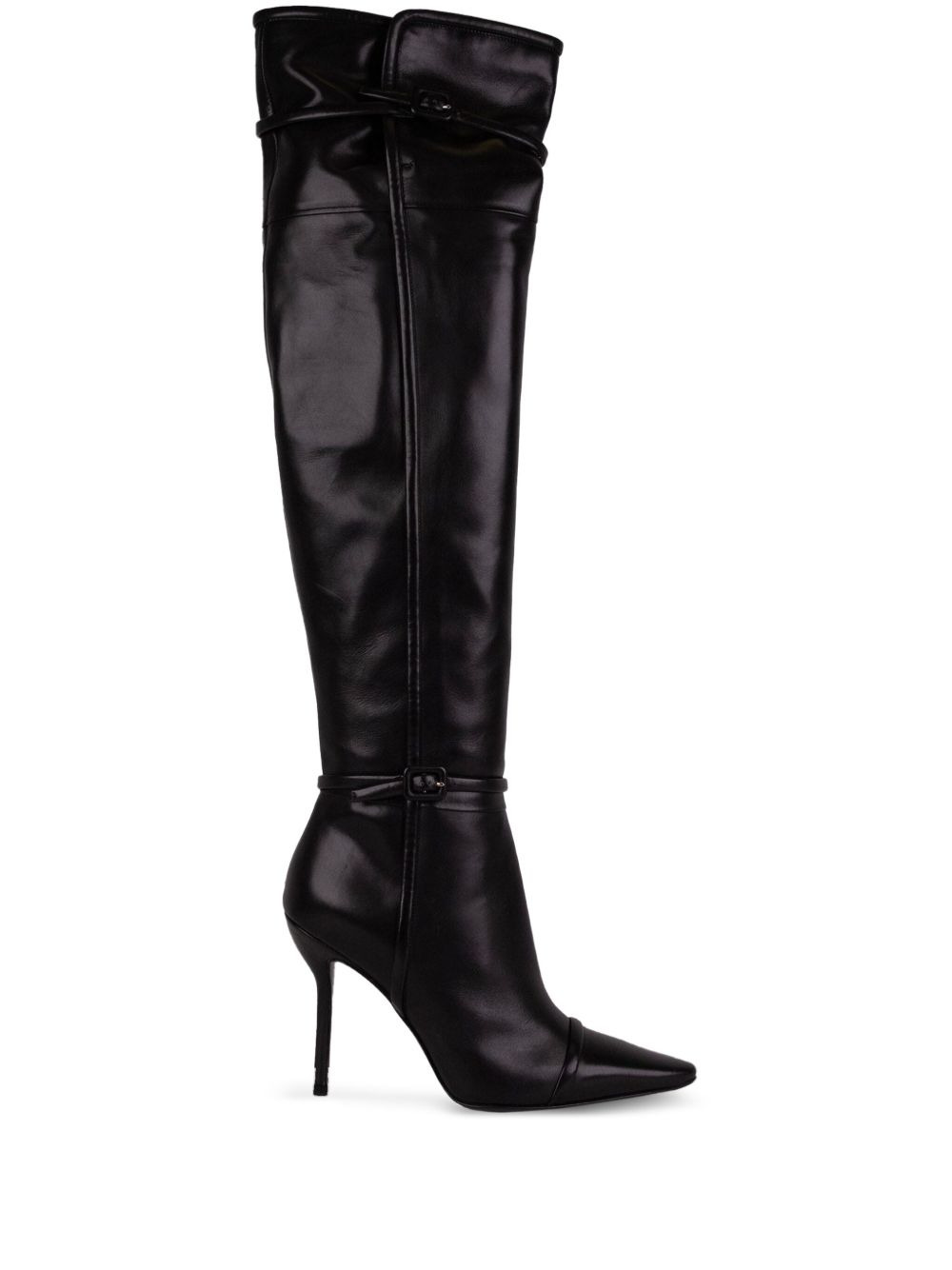 buckle-strap stiletto boots Highlights - Black - Leather - Stiletto heel - Buckle strap - Pointed toe Made in France Composition Sole: Calf Leather 100% Outer: Calf Leather 100% Lining: Fabric 100%