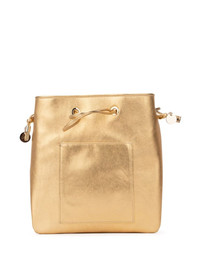 crystal-embellished bucket bag Highlights - Gold-tone - Leather - Crystal embellishment - Main compartment - Adjustable fit - Rear patch pocket Made in Italy Composition Outer: Leather 100%