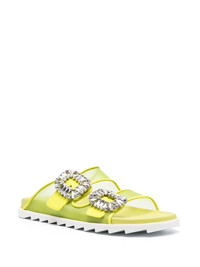 crystal-embellished double-buckle slides Highlights - Lime green - Calf leather - Mesh panelling - Crystal embellishment - Double buckle fastening - Branded insole - Ridged rubber sole - Round toe Made in Italy Composition Leather 100% SIZE & FIT Measurement HEEL 1.18 in(3 cm) Sole height 0.78 in(2 cm)
