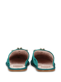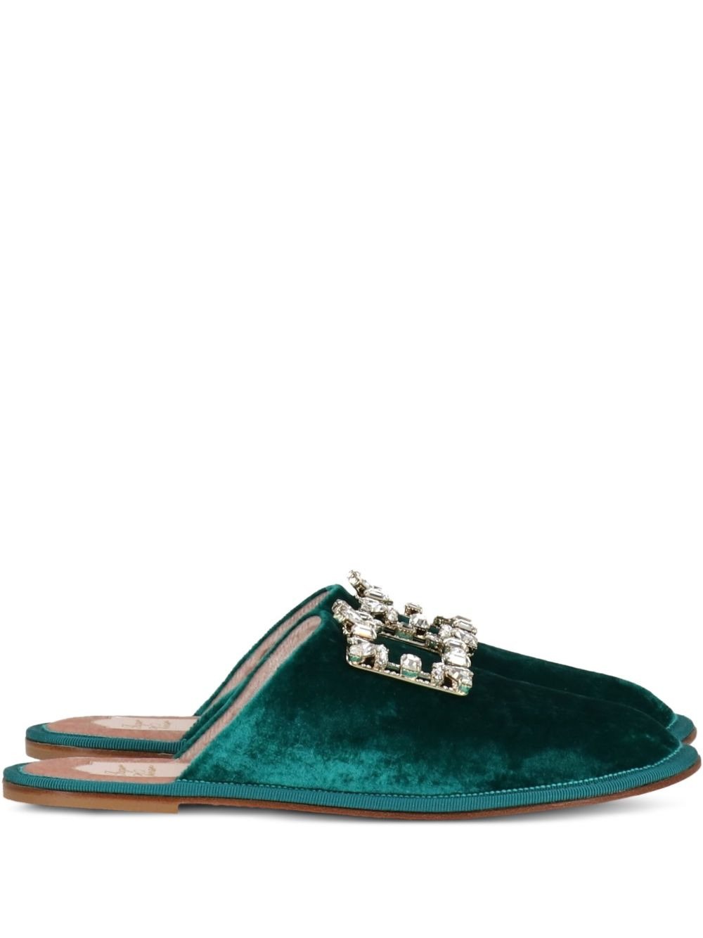 crystal-embellished velvet mules Highlights - Green - Velvet - Crystal-embellished buckle - Flat sole - Round toe - Slip-on style Made in France Composition Outer: Suede 100% Sole: Calf Leather 100% Lining: Fabric 100%