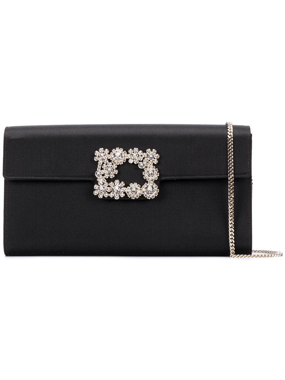 Flower strass buckled clutch Highlights - Black - Inset gemstones - Satin finish - Internal logo patch - Foldover top - Chain-link shoulder strap - Main compartment Made in Italy Composition Satin 100% SIZE & FIT Model measurements Height 5 ft 11 in(1.8 m) Bust/Chest 29.92 in(76 cm) Hips 34.64 in(88 cm) Waist 24.01 in(61 cm) Measurement DEPTH 1.18 in(3 cm) HEIGHT 5.11 in(13 cm) STRAP 21.65 in(55 cm) WIDTH 9.44 in(24 cm)