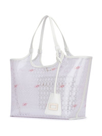 geometric-printed tote bag Highlights - White - Leather trim - Transparent design - Geometric print - All-over logo print - Open top - Leather tag - Main compartment Made in Italy Composition Outer: Leather 100%, PVC 100% SIZE & FIT Measurement DEPTH 4.72 in(12 cm) HEIGHT 11.02 in(28 cm) WIDTH 18.89 in(48 cm)