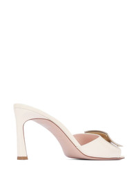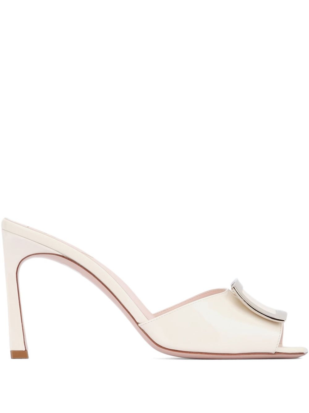heeled mules Highlights - Light beige - Square toe - High heel - Decorative buckle detail - Branded insole Made in Italy Composition Sole: Leather 100% Lining: Leather 100% Outer: Patent Leather 100% SIZE & FIT Measurement HEEL 3.34 in(8.5 cm)