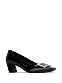 45mm Belle Vivier pumps Highlights - Black - Leather - Logo plaque - Silver-tone hardware - Square toe - Branded insole - Mid block heel Made in Italy Composition Sole: Calf Leather 100% Lining: Calf Leather 100% Outer: Patent Leather 100% SIZE & FIT Measurement HEEL 1.77 in(4.5 cm)