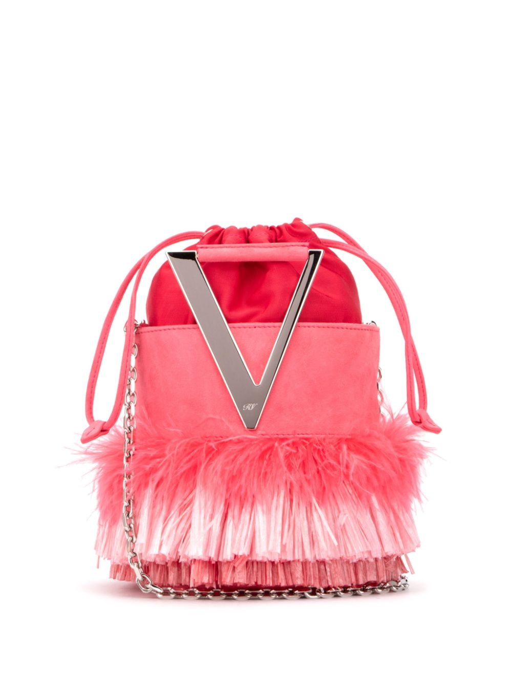 mini Tiki Viv RV bucket bag Highlights - Flamingo pink - Leather - Suede - Panelled design - Top drawstring fastening - Adjustable chain-link shoulder strap - Bucket body - Logo plaque - Fringe detailing - Main compartment Made in Italy Composition Outer: Leather 100%, Fabric 100%