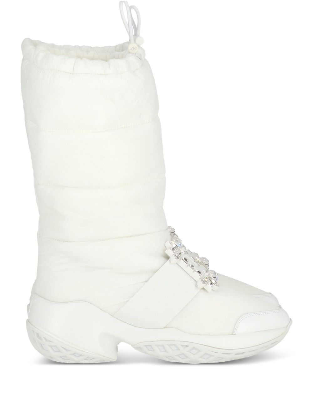 quilted crystal-buckle boots Highlights - White - Quilted design - Crystal-embellished buckle - Rubber sole Made in France Composition Outer: Fabric 100% Sole: Rubber 100% Lining: Fabric 100%