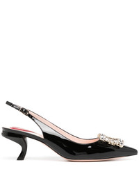Virgule Strass Buckle Slingback Pumps in Patent Leather
