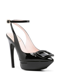 Viv' Choc Lacquered Buckle Slingback Pumps in Patent Leather