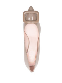 Viv' Choc 84mm leather pumps Highlights - Blush beige - Calf leather - Patent finish - Buckle detail at the toe - Pointed toe - Branded insole - 84mm high heel Made in Italy Composition Lining: Calf Leather 100% Outer: Calf Leather 100%, Rubber 100% Sole: Calf Leather 100% SIZE & FIT Measurement HEEL 3.3 in(8.4 cm)
