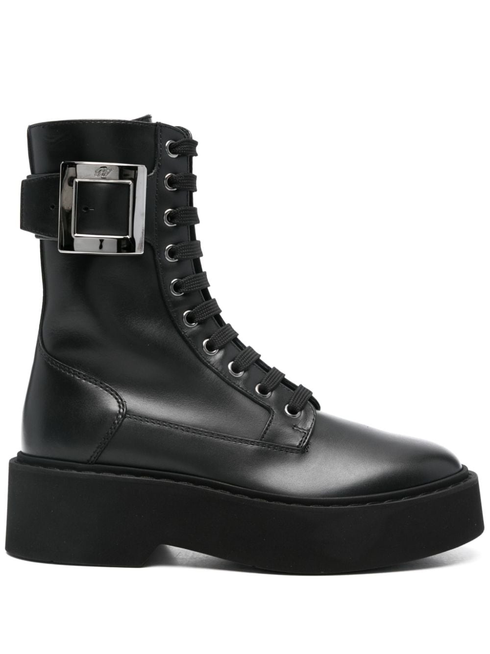 Viv Rangers boots Highlights - Black - Calf leather - Smooth grain - Side zip fastening - Front lace-up fastening - Logo-buckle detail - Round toe - Branded leather insole - Chunky rubber sole Made in Italy Composition Leather 100% SIZE & FIT Measurement HEEL 1.96 in(5 cm) HEIGHT 7.08 in(18 cm) Sole height 1.37 in(3.5 cm)