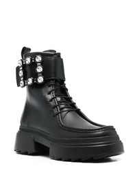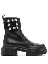 Wallaviv ankle boots Highlights - Black - Calf leather - Smooth grain - Side zip fastening - Pull-tab at the heel - Raised logo detail - Decorative buckle detailing - Crystal embellishment - Moc stitching - Square toe - Branded insole - Ridged rubber sole - Ankle-length Made in Italy Composition Sole: Rubber 100% Lining: Polyurethane 100% Outer: glass 100%, Calf Leather 100% SIZE & FIT Measurement HEEL 2.36 in(6 cm) PLATFORM 1.77 in(4.5 cm)