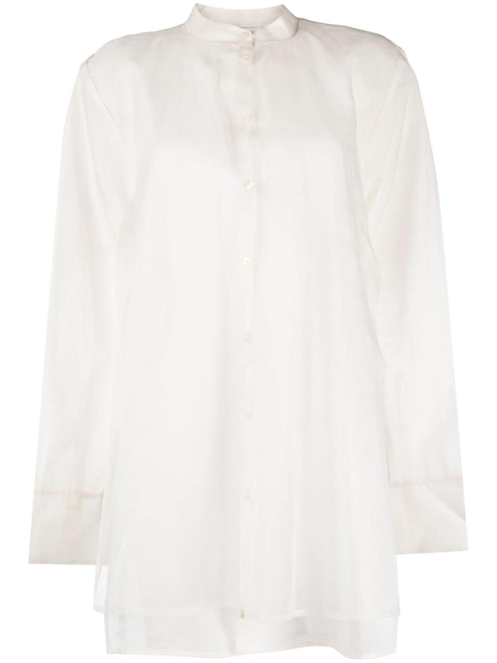 button-up band-collar blouse Highlights - Cream white - Silk/cotton - Band collar - Front button fastening - Long sleeves - Buttoned cuffs - Straight hem Imported Composition Lining: Cotton 100% Outer: Silk 100% Washing instructions Dry Clean Only