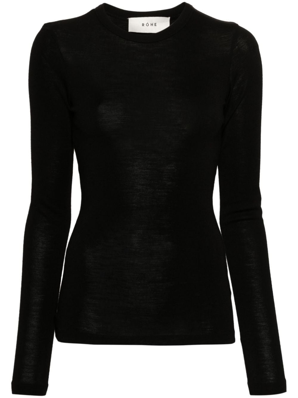 crew-neck long-sleeve t-shirt Highlights - Black - Merino wool - Fine knit - Ribbed trim - Crew neck - Long sleeves - Straight hem Imported Composition Merino 100% SIZE & FIT Model measurements Height 5 ft 9 in(1.75 m) Bust/Chest 31.88 in(81 cm) Hips 34.64 in(88 cm) Waist 24.01 in(61 cm) FittingInformation Designed for a slim fit that sits just away from the body offering a close yet comfortable fit Made from a lightweight non-stretch fabric, this piece offers minimal elasticity when worn This piece fits true to size – take your usual size Washing instructions Hand Wash