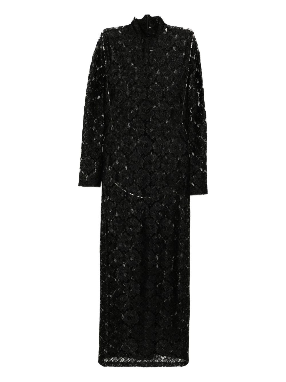 Floral lace maxi turtleneck dress Black