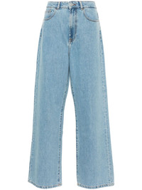 low-waist wide-leg jeans Highlights - Light blue - Cotton blend - Denim - Low-rise - Belt loops - Classic five pockets - Wide leg - Concealed fly and button fastening Imported Composition Cotton 80%, Recycled Cotton 20% SIZE & FIT Model measurements Height 5 ft 10 in(1.78 m) Bust/Chest 31.49 in(80 cm) Hips 37 in(94 cm) Waist 23.62 in(60 cm) FittingInformation Designed with a wide leg cut, these jeans allow for a close fit at the waist and offer a loose and roomy fit over the leg Sturdy and hard-wearing, this denim piece offers no stretch This piece fits true to size – take your usual size