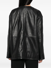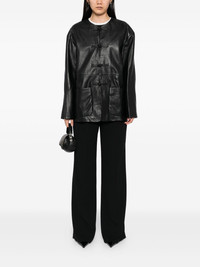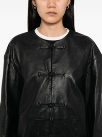 Mandarin jacket Highlights - Black - Front toggle fastening - Two side patch pockets - Long sleeves Imported Composition Sheepskin 100% SIZE & FIT Model measurements Height 5 ft 10 in(1.77 m) Bust/Chest 30.7 in(78 cm) Hips 35.82 in(91 cm) Waist 21.25 in(54 cm) FittingInformation Designed for a relaxed fit, this piece allows for comfort and movement when worn Soft leather has a supple and smooth construction offering some flexibility Washing instructions Dry Clean Only