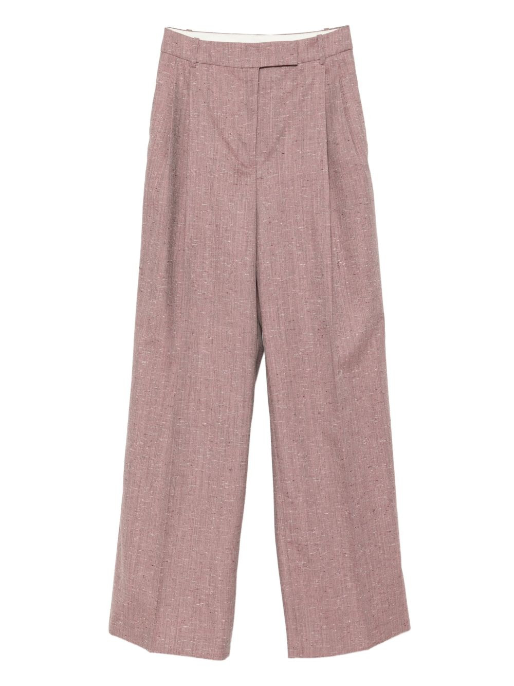 mid-waist tweed trousers Highlights - Blush pink - Concealed front button, hook and zip fastening - Two rear welt pockets - Belt loops Imported Composition Outer: Virgin Wool 82%, Viscose 9%, Polyester 9% Lining: Viscose 100% Washing instructions Dry Clean Only
