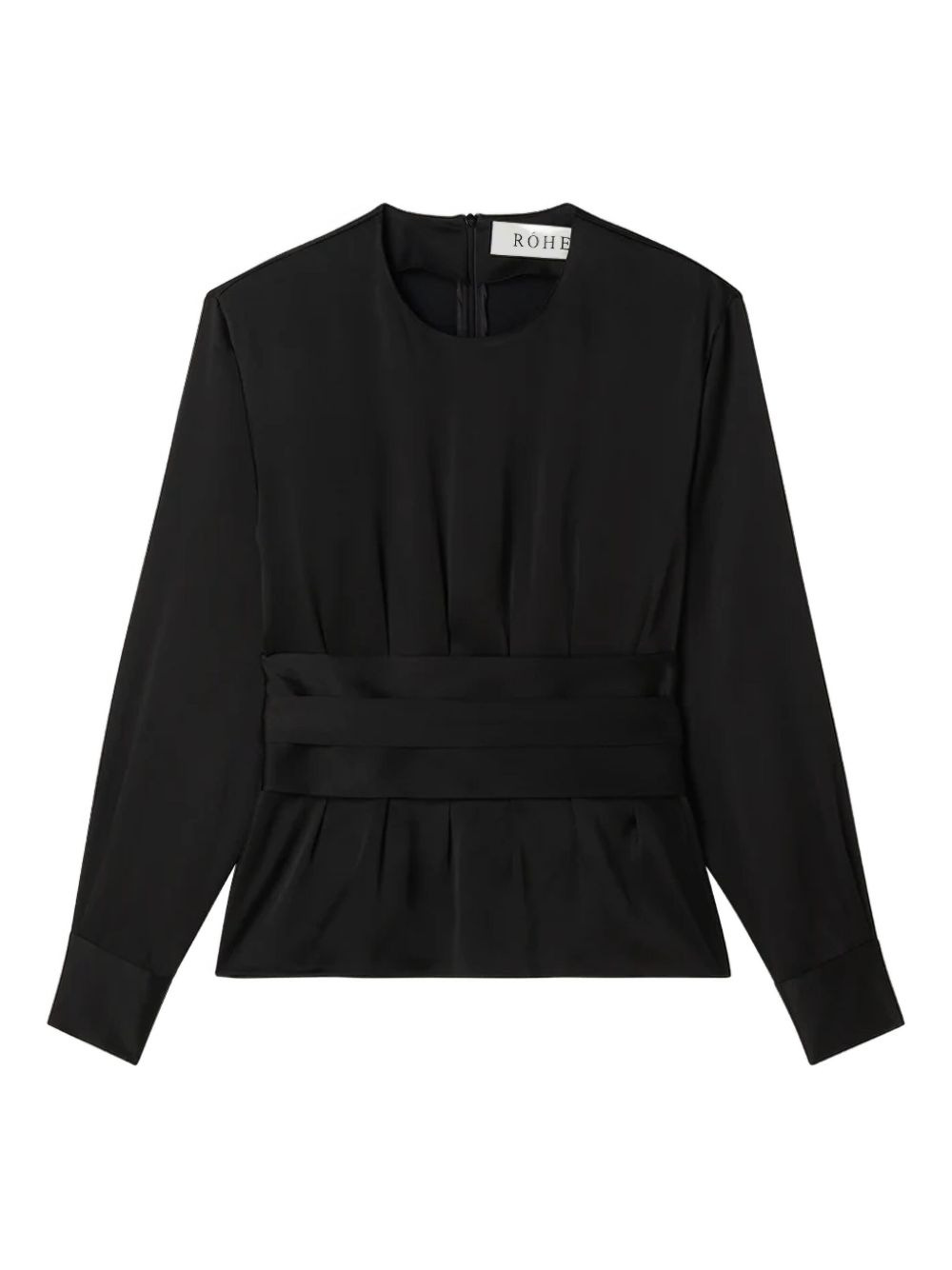 pleated belted top Highlights - Black - Pleated detailing - Self-tie belt - Long sleeves - Round neck Imported Composition Acetate 71%, Viscose 29% Washing instructions Read Manufacturer Guidelines