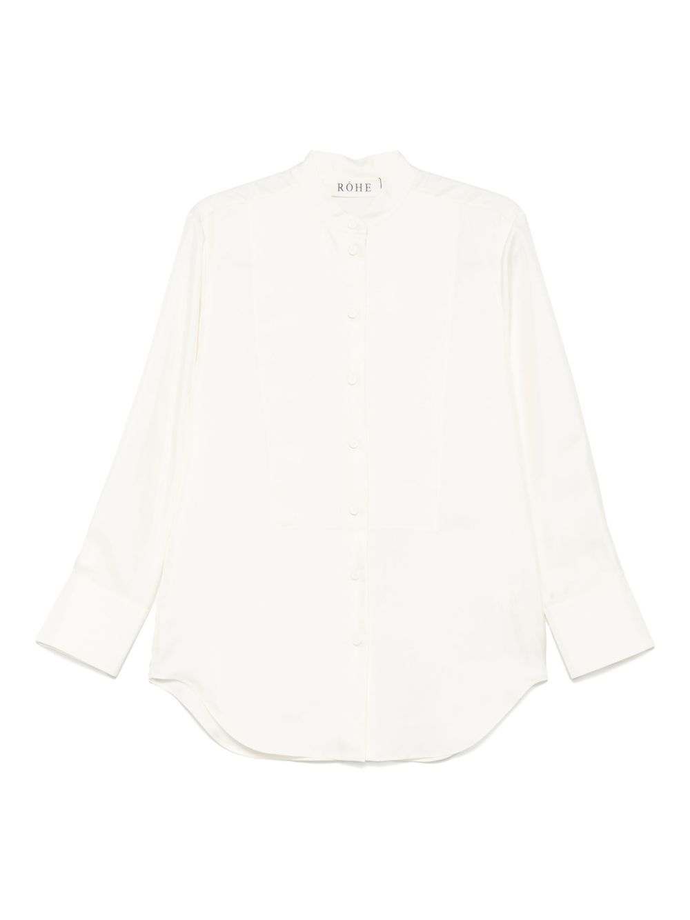 silk shirt Highlights - Light beige - Front button fastening - Buttoned cuffs - Band collar - Long sleeves Imported Composition Silk 100% SIZE & FIT Model measurements Height 5 ft 10 in(1.78 m) Bust/Chest 31.49 in(80 cm) Hips 37 in(94 cm) Waist 23.62 in(60 cm) FittingInformation Designed to be unstructured, offering a loose fit throughout Made from a lightweight non-stretch fabric