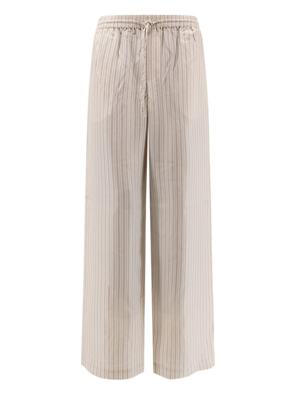 striped trousers Highlights - Beige - Vertical stripe pattern - Elasticated waistband - Drawstring fastening Imported Composition Silk 100% Washing instructions Read Manufacturer Guidelines
