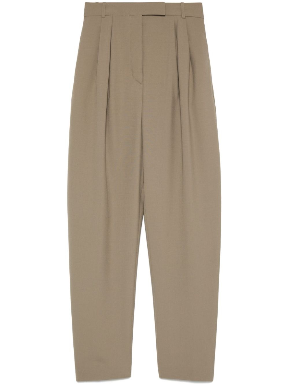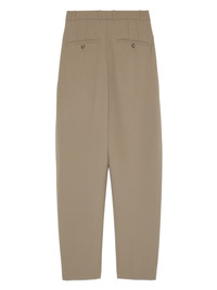 virgin-wool trousers Highlights - Khaki - Concealed front button, hook and zip fastening - Slip pockets to the sides - Two rear welt pockets - Pleat detailing Imported Composition Virgin Wool 100% Washing instructions Do Not Wash/Do Not Dry Clean