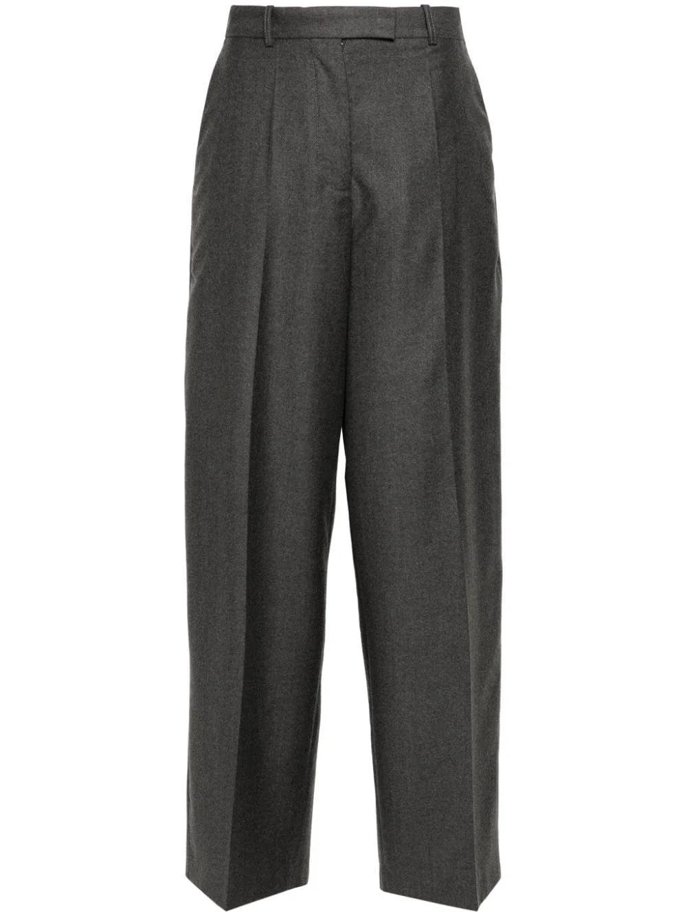 wide-leg trousers Highlights - Dark grey - Virgin wool - Melange effect - Tailored design - Wide leg - Mid-rise - Concealed front button, hook and zip fastening - Belt loops - Adjustable waist straps - Two diagonal pockets to the sides - Two rear flap pockets - Pressed crease - Straight hem Imported Composition Lining: Viscose 100% Virgin Wool 100% SIZE & FIT Model measurements Height 5 ft 10 in(1.77 m) Bust/Chest 32.28 in(82 cm) Hips 35.03 in(89 cm) Waist 25.19 in(64 cm) FittingInformation Designed with a wide-leg cut, these trousers allow for a close fit at the waist and offer a loose and roomy fit over the leg Made from a midweight non-stretch fabric This piece fits true to size – take your usual size Washing instructions Dry Clean Only