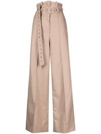 belted wide-leg trousers Highlights - Almond beige - Wool blend - Logo patch to the rear - Pressed crease - High waist - Wide leg - Belted waist - Concealed front fastening - Two side inset pockets - Two rear welt pockets Imported Composition Wool 60%, Polyester 40% SIZE & FIT Model measurements Height 5 ft 10 in(1.77 m) Bust/Chest 31.49 in(80 cm) Hips 35.43 in(90 cm) Waist 25.19 in(64 cm) FittingInformation Designed for a straight-leg fit, these trousers allow for a close fit at the waist and an unrestricted, comfortable fit over the leg The belt offers adjustability for fitted preferences Made from a midweight non-stretch fabric This piece fits true to size – take your usual size Washing instructions Dry Clean Only