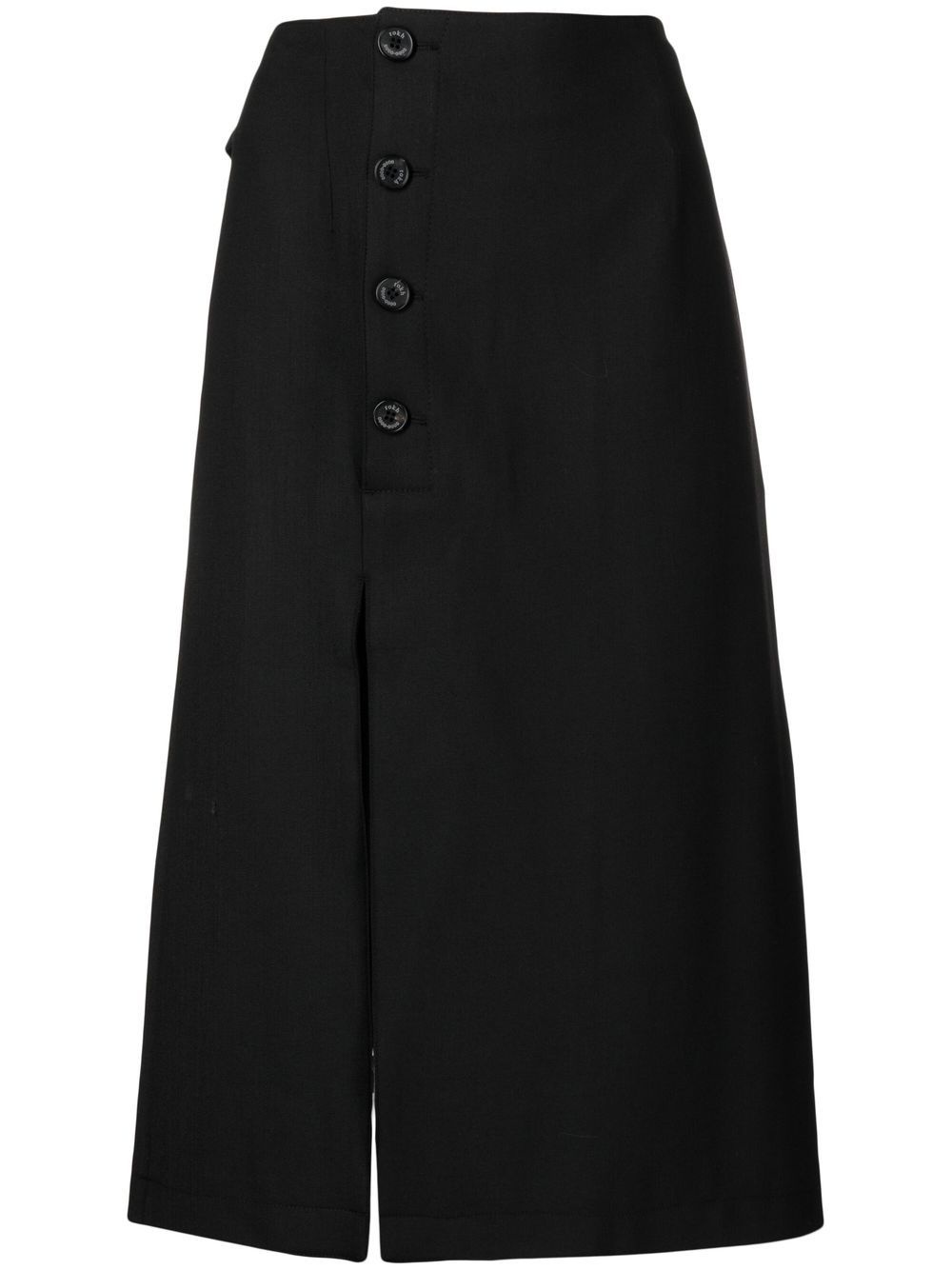 button-detail midi skirt black high waist side button fastening side slit mid-length Imported Composition Polyester 53%, Wool 44%, Elastane 3% SIZE & FIT Model measurements Height 5 ft 10 in(1.78 m) Bust/Chest 33.46 in(85 cm) Hips 35.43 in(90 cm) Waist 24.4 in(62 cm) FittingInformation This piece fits true to size. We recommend you get your regular size Designed to be fitted at the waist and hips, loose over the leg Made with a mid-weight stretch fabric Washing instructions Specialist Cleaning
