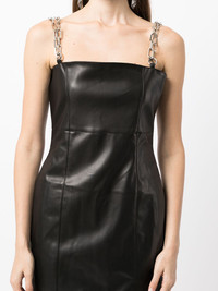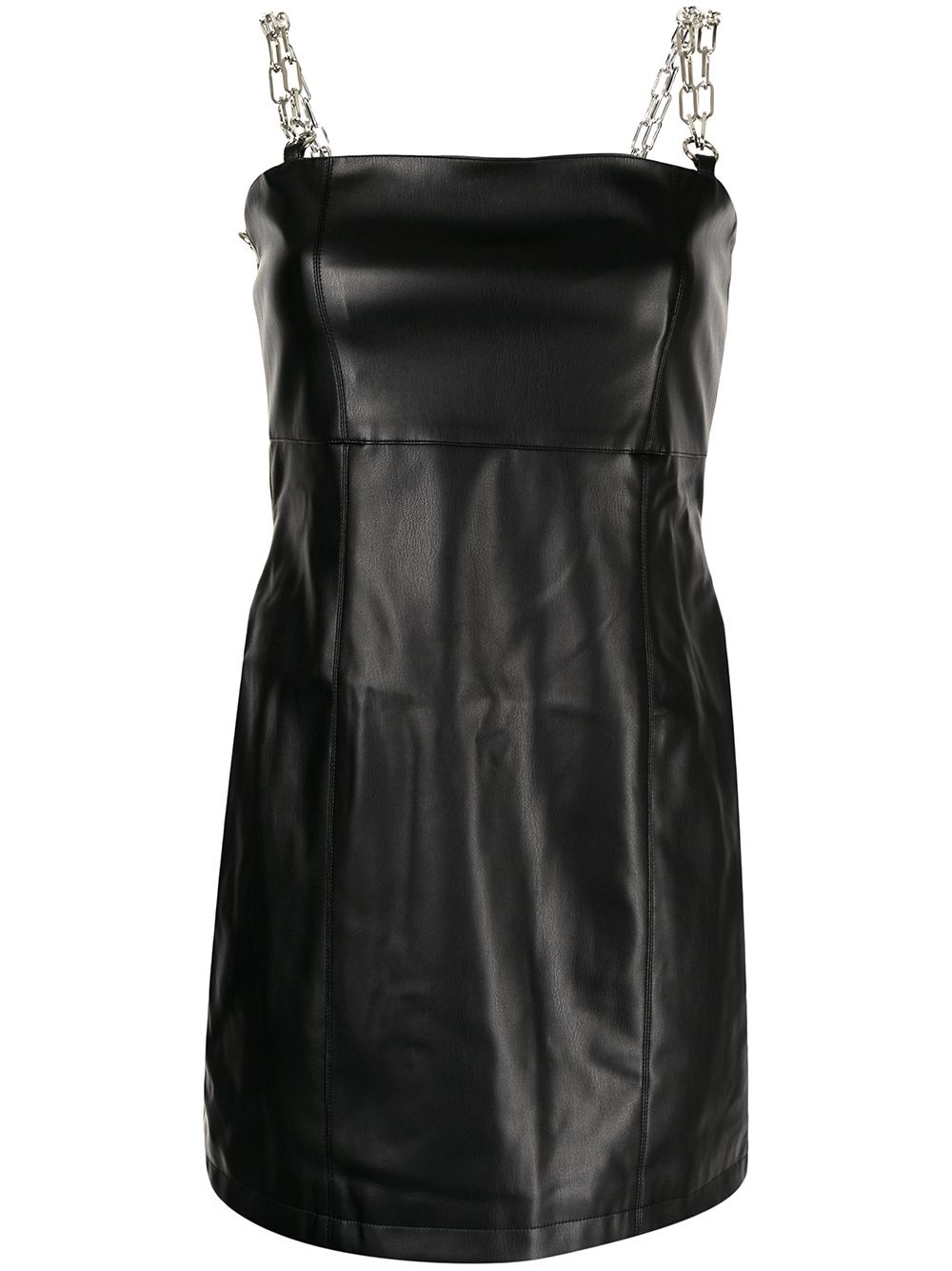chain strap mini dress black two chain-link shoulder straps square neck fitted waistline thigh-length rear zip fastening Imported Composition Polyurethane 100% SIZE & FIT Model measurements Height 5 ft 10 in(1.79 m) Bust/Chest 32.28 in(82 cm) Hips 35.43 in(90 cm) Waist 24.01 in(61 cm) FittingInformation This piece fits true to size. We recommend you get your regular size Designed for a close fit at the bust, waist and hips Made with a mid-weight non-stretch fabric Washing instructions Specialist Cleaning