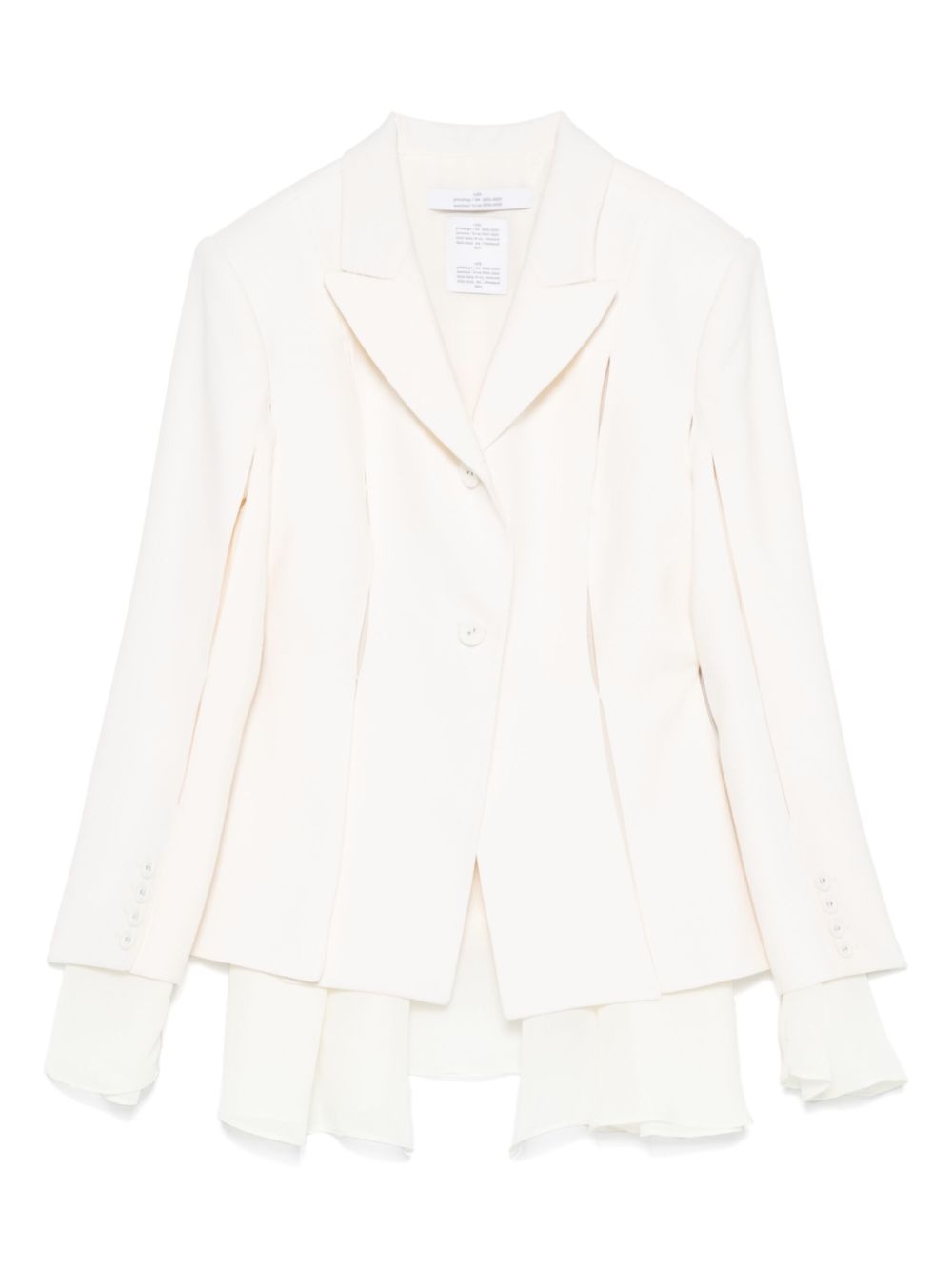 cut-out layered blazer Highlights - Light beige - Front button fastening - Peak lapels - Buttoned-cuff sleeves - Shoulder pads Imported Composition Outer: Polyester 100% Lining: Polyester 100% SIZE & FIT Model measurements Height 5 ft 10 in(1.78 m) Bust/Chest 31.49 in(80 cm) Hips 37 in(94 cm) Waist 23.62 in(60 cm) FittingInformation Designed for a slim fit that sits just away from the body offering a close yet comfortable fit The internal shoulder pads offer a structured shape Made from a midweight non-stretch fabric