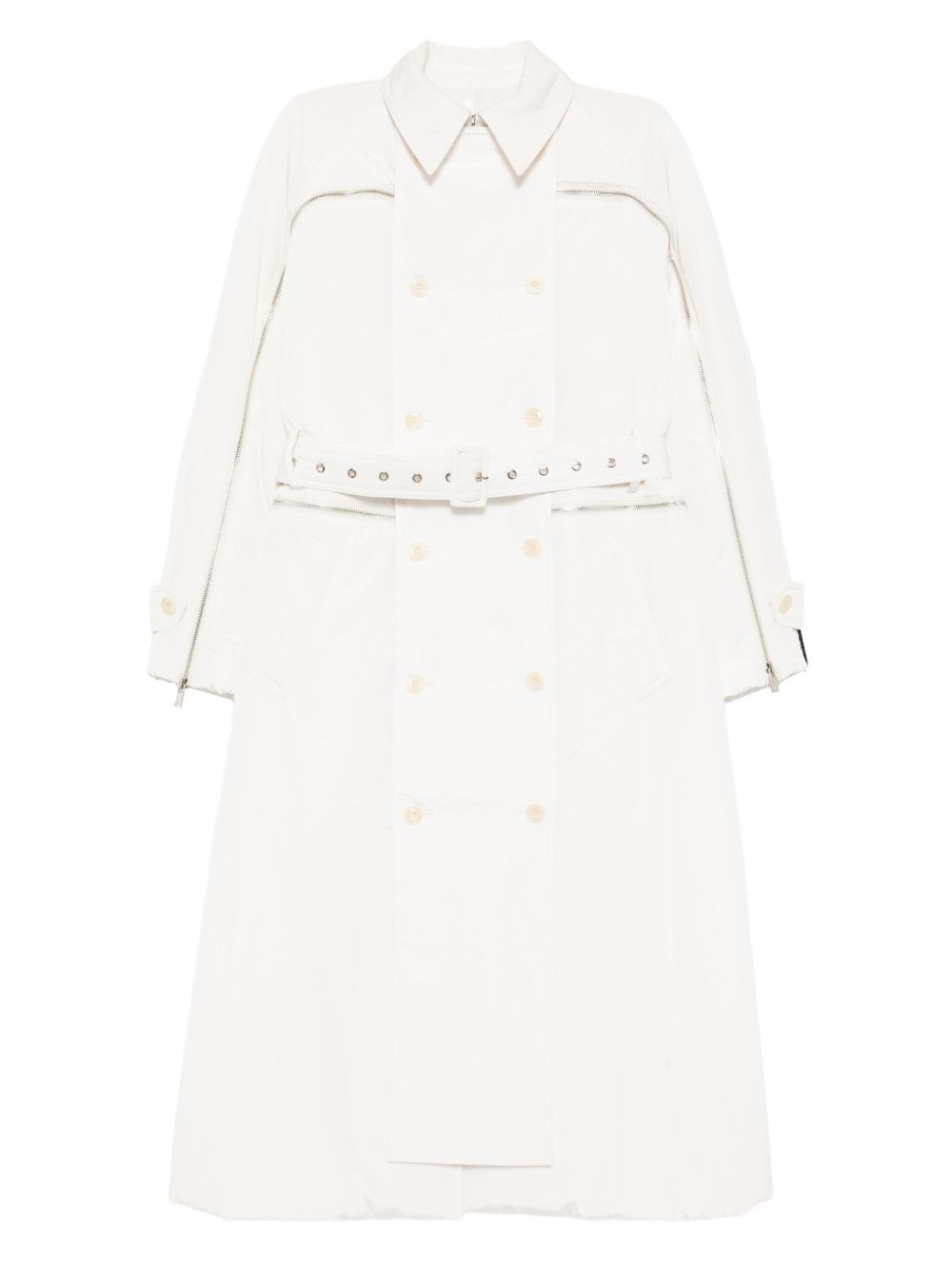 double-breasted trench coat Highlights - White - Front button fastening - Detachable and adjustable waist belt - Two side slash pockets - Detachable legs Imported Composition Lining: Polyester 100% Outer: Polyester 100% Washing instructions Dry Clean Only