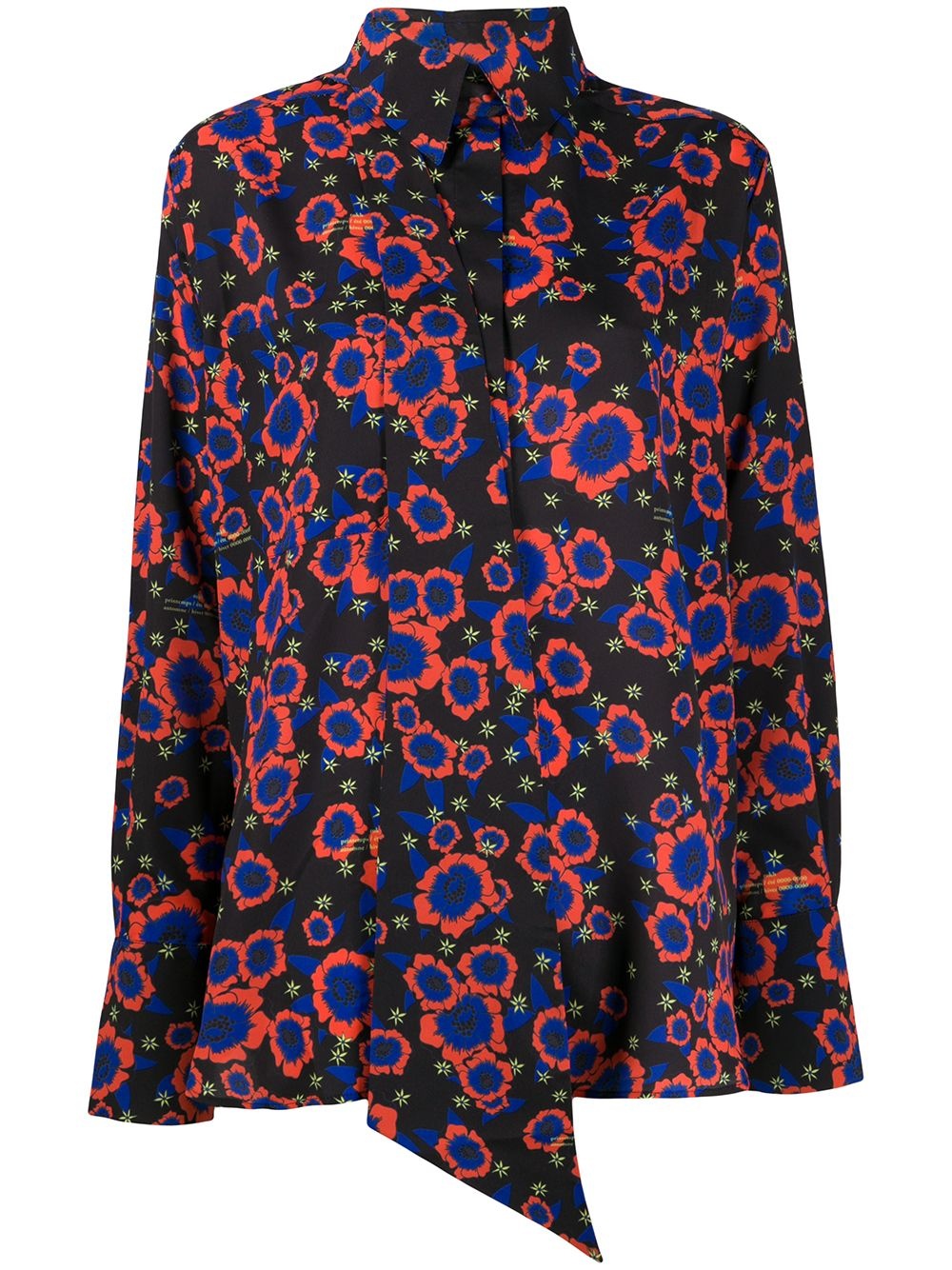 floral-print tie-insert shirt Black floral-print tie-insert shirt from ROKH featuring a multicoloured print, a pointed collar, long sleeves, button cuffs and a curved hem. Made in United Kingdom Composition Polyester 100% SIZE & FIT Model measurements Height 5 ft 10 in(1.79 m) Bust/Chest 33.07 in(84 cm) Hips 35.82 in(91 cm) Waist 24.01 in(61 cm) FittingInformation This piece fits true to size. We recommend you get your regular size Cut for a loose fit Made with a lightweight non-stretch fabric Washing instructions Dry Clean Only