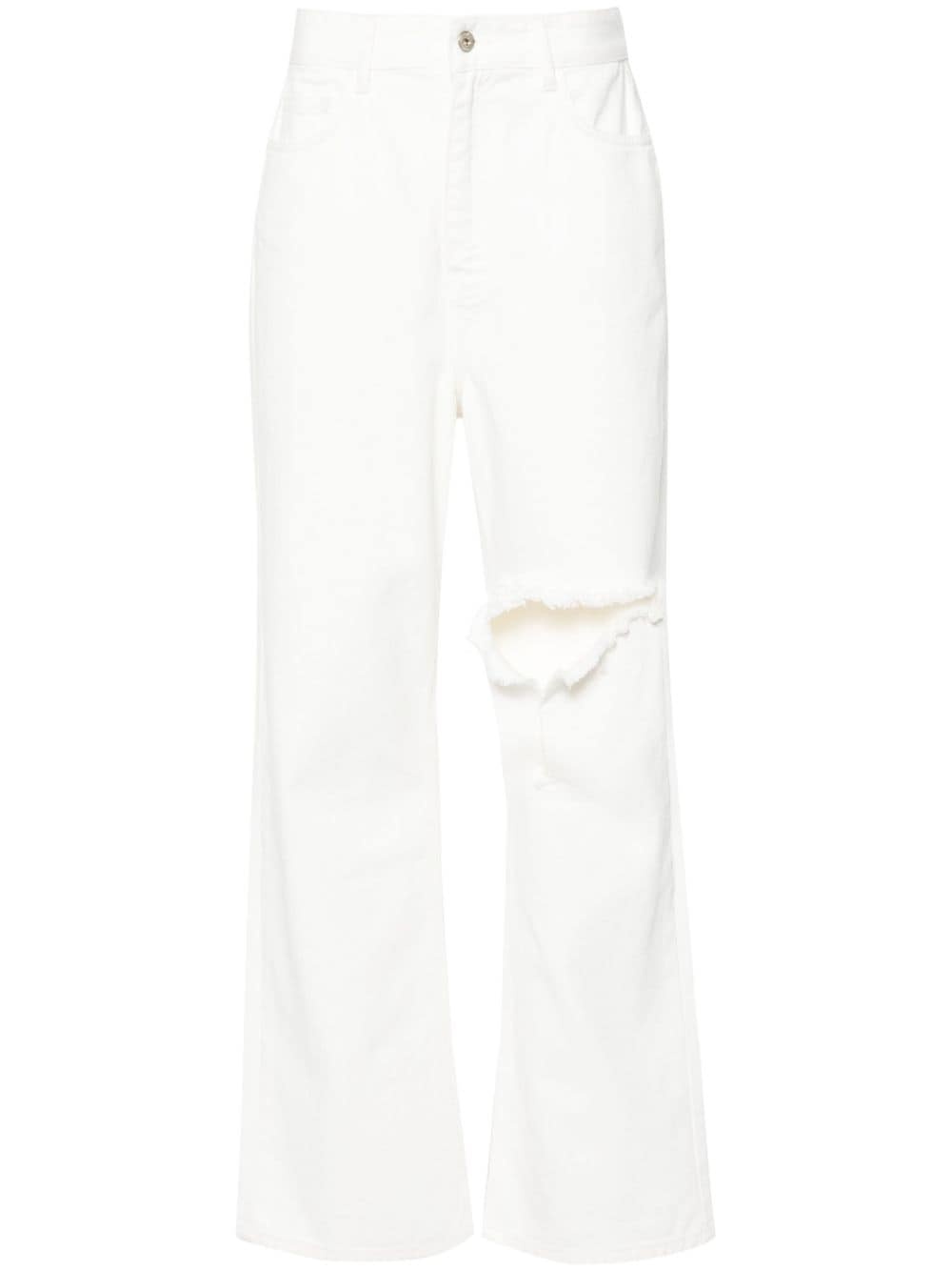 high-rise wide-leg jeans Highlights - White - Cotton - Denim - High-rise - Belt loops - Classic five pockets - Ripped detailing - Wide leg - Logo-debossed patch to the rear - Concealed fly and button fastening Imported Composition Cotton 100% SIZE & FIT Model measurements Height 5 ft 9 in(1.75 m) Bust/Chest 34.64 in(88 cm) Hips 36.61 in(93 cm) Waist 26.37 in(67 cm) FittingInformation Designed for a straight-leg fit, these jeans allow for a close fit at the waist and an unrestricted and comfortable fit over the leg Sturdy and hard-wearing, this denim piece offers no stretch This piece fits true to size – take your usual size