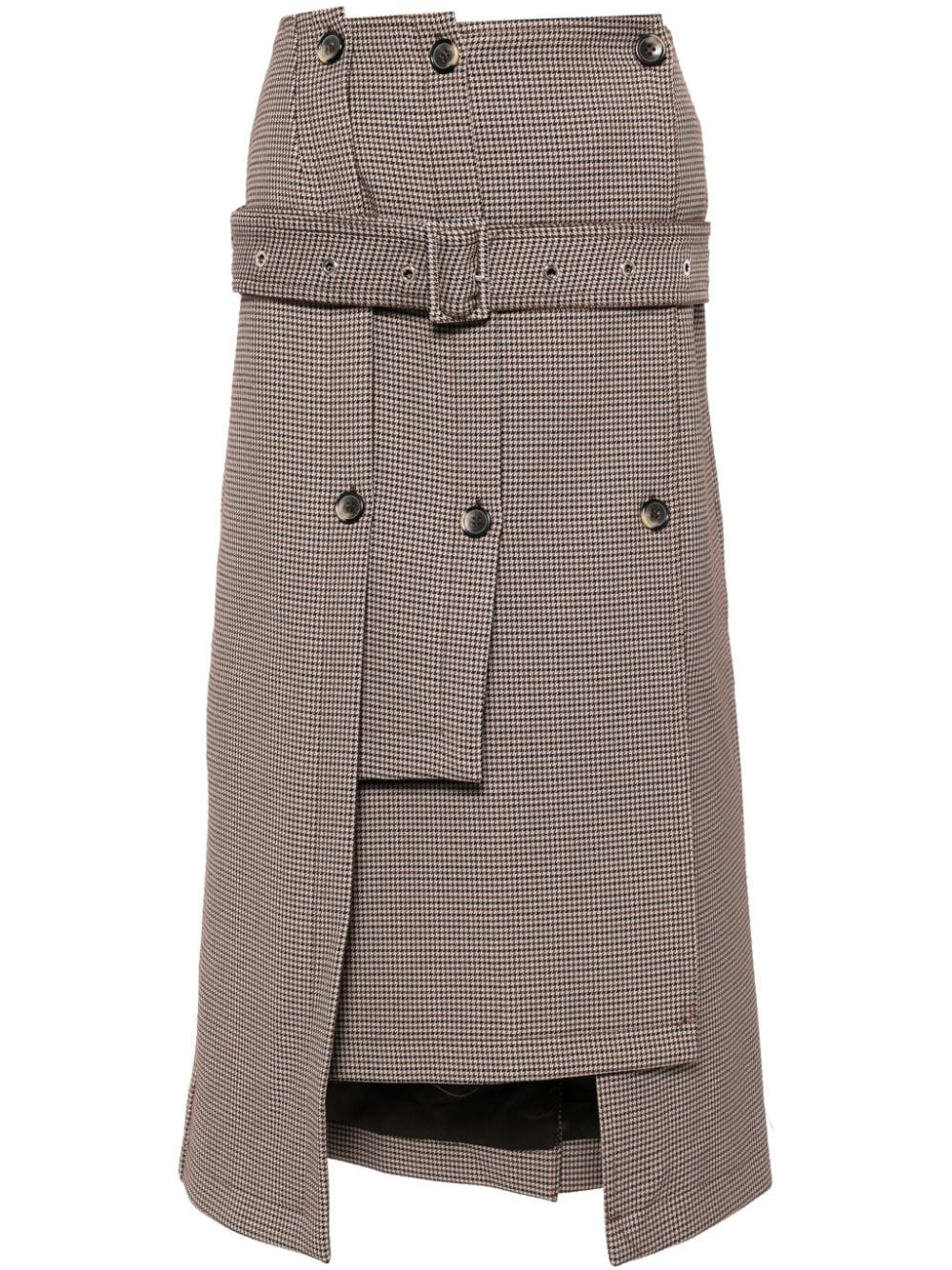 houndstooth belted midi skirt