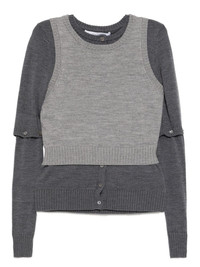 layered cardigan top Highlights - Stone grey - Crew neck - Detachable cardigan - Ribbed cuffs and hem Imported Composition Merino 100% SIZE & FIT Model measurements Height 5 ft 10 in(1.78 m) Bust/Chest 31.88 in(81 cm) Hips 37 in(94 cm) Waist 25.19 in(64 cm) FittingInformation Designed for a slim fit that sits just away from the body offering a close yet comfortable fit Made with a midweight knit, this piece offers some stretch Washing instructions Dry Clean Only