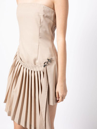 mini strapless pleated dress light brown silver-tone hardware strapless rear zip fastening asymmetric hem pleated skirt above-knee length Imported Composition Body: Polyester 70%, Wool 30% SIZE & FIT Model measurements Height 5 ft 9 in(1.76 m) Bust/Chest 31.1 in(79 cm) Hips 35.03 in(89 cm) Waist 24.4 in(62 cm) FittingInformation This piece fits true to size. We recommend you get your regular size Designed for a close fit at the bust, waist and hips Made with a mid-weight fabric Washing instructions Dry Clean Only