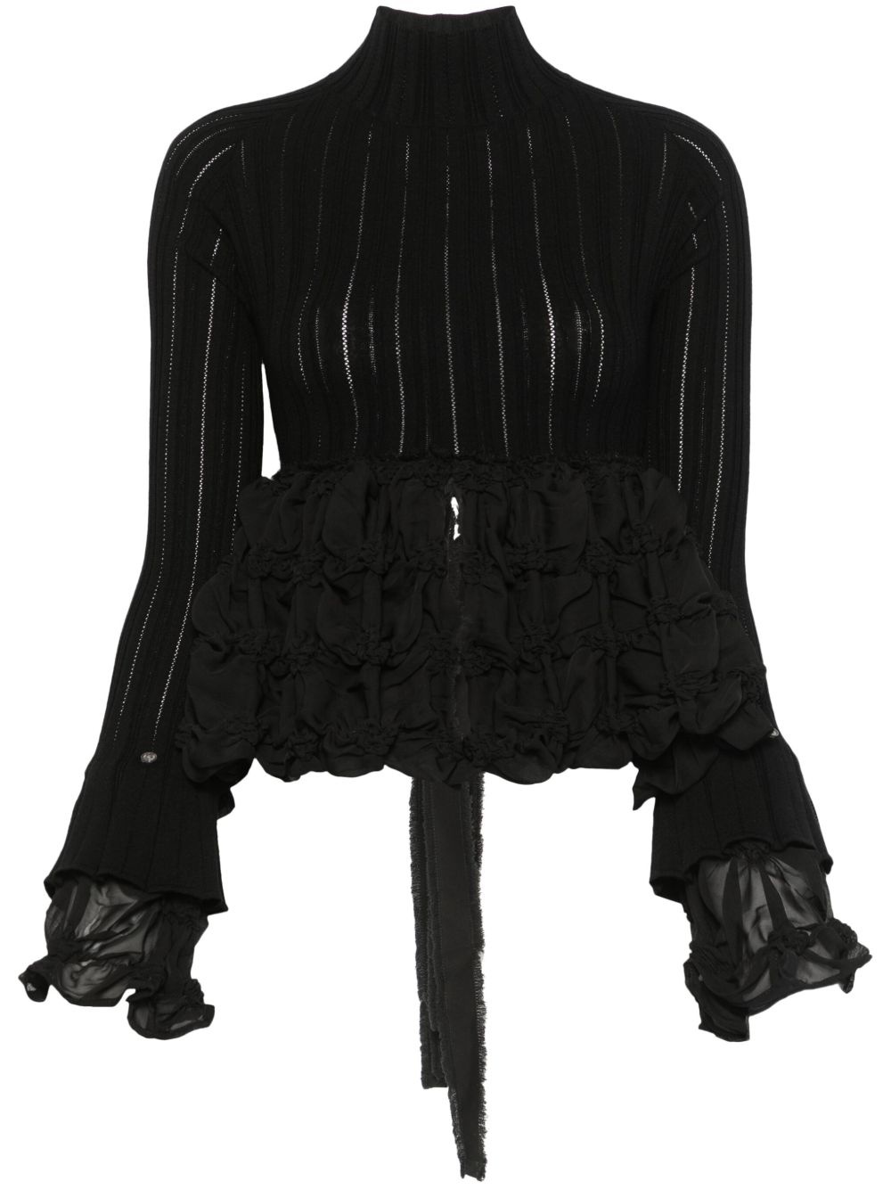 open-back top Highlights - Black - Self-tie fastening - Mock neck - Smocked panel - Front slit Imported Composition Viscose 78%, Polyester 22%