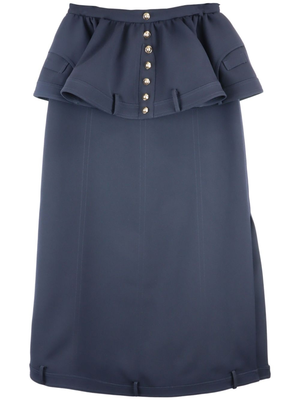 peplum midi skirt Highlights - Navy blue - Rear zip fastening - Decorative buckle detail - Peplum hem - Mid-length Imported Composition Polyester 100% Washing instructions Read Manufacturer Guidelines