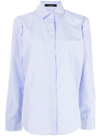 pinstripe-print tailored long-sleeve shirt blue/white cotton-blend pinstripe print classic collar concealed front fastening long sleeves buttoned cuffs curved hem Imported Composition Cotton 85%, Polyester 15% SIZE & FIT Model measurements Height 5 ft 9 in(1.76 m) Bust/Chest 29.13 in(74 cm) Hips 33.07 in(84 cm) Waist 22.83 in(58 cm) FittingInformation This piece fits true to size. We recommend you get your regular size Cut for a loose fit Made with a mid-weight non-stretch fabric Washing instructions Dry Clean Only