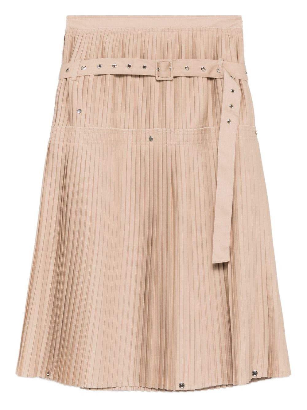 pleated belted midi skirt Highlights - Desert beige - Pleated design - Belted waist - Layered design Imported Composition Fabric 100% Washing instructions Read Manufacturer Guidelines