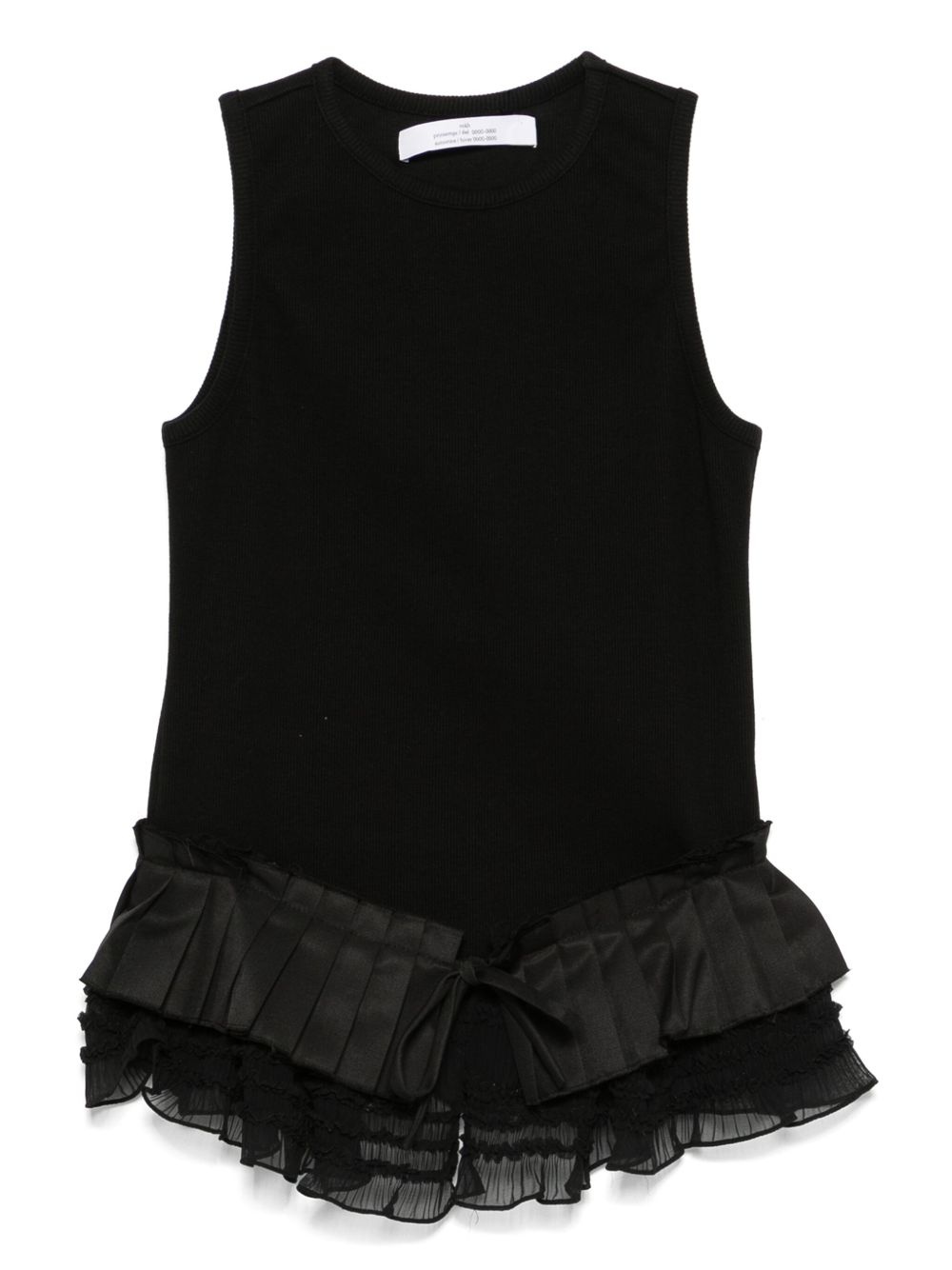 ruffled tank top Highlights - Black - Front tie fastening - Crew neck - Sleeveless - Pleat detailing Imported Composition Polyester 100%, Cotton 94%, Spandex/Elastane 6%