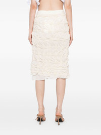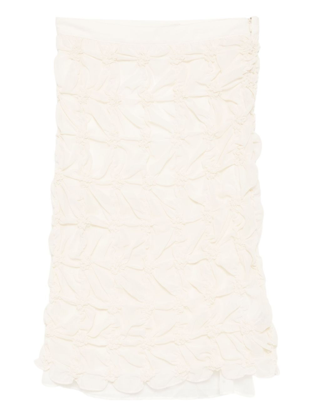 scrunched chiffon skirt Highlights - Cream white - Concealed side hook and zip fastening - Full lining Imported Composition Outer: Polyester 100% Lining: Polyester 100% SIZE & FIT Model measurements Height 5 ft 9 in(1.76 m) Bust/Chest 31.1 in(79 cm) Hips 35.03 in(89 cm) Waist 24.4 in(62 cm) FittingInformation This midi-length skirt is intended to be worn just below the waist Made from a lightweight non-stretch fabric Washing instructions Dry Clean Only