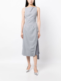 side-pleats midi dress Highlights - Cloud grey - Flared design - Pleat detailing - Wide neck - Open back - Sleeveless - Fitted waistline - Mid-length Imported Composition Wool 100% SIZE & FIT Model measurements Height 5 ft 10 in(1.77 m) Bust/Chest 28.74 in(73 cm) Hips 35.82 in(91 cm) Waist 24.4 in(62 cm)